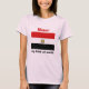 On the front of this shirt an editable title and slogan accompanies the Egyptian flag with its coat of arms on red, white and black. The back displays a detailed map of Egypt.