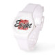 I only have one complaint. I ordered the watch with clear case and strap, and what was sent was white case and strap. I'm going to keep it because 1) it looks very nice in white, and 2) it would take too long to get a replacement made and sent in time for my occasion. Aside from the mix up with the color, the watch does look very good in white. The purple dial is actually sparkly which did not show in the online images. That was a nice surprise. If you like Swatch watches this is very similar to those. It's 33.6mm in diameter, 10.5mm thick, and 40.6mm lug to lug. Stainless steel case back says 3ATM/30m WR, so no swimming or showering or submerging this one. If you like Woodstock, this is a great choice.