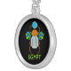 I chose gold plated so that the metal would not react with my skin oils and perspiration. But, I changed the necklace from the gold plated one to a sterling silver. My skin cells will tarnish the silver. But it will not look as bad if some portion of the gold plated necklace somehow became compromised. Zazzle did a find job turning the picture into a pendant for me. As you can see, the colors and the printing of the final product, match the preview. The picture I took is not very clear. But I am pleased with the product I received.