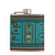 Egyptian Golden Leather hieroglyphs on teal Hip Flask