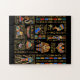 Egyptian hieroglyphs and deities on black jigsaw puzzle