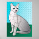 Portrait of an Egyptian Mau cat with a patterned aqua gradient and peacock green background - digital art, combining vector drawing and raster enhancement