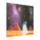A modern art montage of the Great Pyramids of Giza in Egypt surrounded in deep space whilst UFO spacecraft beams light down. Perfect gift for anyone and any age. Ideal for lovers of history, the universe and the beyond. What lies beyond what we know is something we don't know.