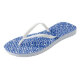 Flip flops in an Egyptian-inspired Art Deco tile pattern in deep cobalt blue and white