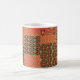 A chic White Ceramic Coffee Mug, with a trendy Faux Patchwork of traditional Egyptian Patterns in Rusty Red, Golden Yellow, Green and Black. Part of the Posh and Painterly "Egyptian" collection, this pattern can be easily adapted to fit any Coffee Mug.