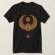An Egyptian inspired scarab beetle design with large wings outstretched on either side. Above the beetle’s head is a circular design with an Ankh in the center