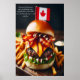 Join the Eh Team for some Maple Bacon Magic with this delectable Canadian burger. A juicy beef patty is topped with crispy maple-glazed bacon, sharp cheddar cheese, and a generous smear of maple mayo, all stacked high on a soft potato bun. A small Canadian flag adds a patriotic touch, while a side of poutine completes this Canadian culinary masterpiece.