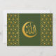Modern Eid Mubarak Celebration Invitation with Taj Mahal inspired Islamic pattern in gold.