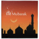 Eid Greeting illustration with an evening sky scene: silhouette of a mosque on a red evening sky.