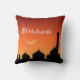 Eid Greeting illustration with an evening sky scene: silhouette of a mosque on a red evening sky.