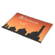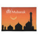 Eid Greeting illustration with an evening sky scene: silhouette of a mosque on a red evening sky.