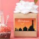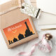 Eid Greeting illustration with an evening sky scene: silhouette of a mosque on a red evening sky.