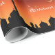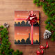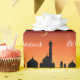 Eid Greeting illustration with an evening sky scene: silhouette of a mosque on a red evening sky.