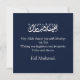 Convey your best wishes for Eid to family, friends, and loved ones by sending our beautiful blue and white Eid Mubarak greeting card featuring mosque, crescent, stars and "Eid Mubarak" written in Arabic calligraphy on blue background. It has beautiful Eid wishes" May Allah shower you with blessings this Eid Wishing you happiness and prosperity Today and always Happy Eid!" which you can change or remove by clicking "Personalize this template".