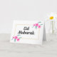 Pink floral Ramadan wishing Eid Mubarak Greeting card.