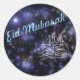 Eid Mubarak with stickers with a starry background with Arabic script. A fun and beautiful sticker to add to greeting card envelopes, gift box, or to cut up into individual squares to pass out to children with sweets. Make your purchase today.