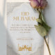 Celebrate Eid ul Adha with this elegant greeting card featuring gold geometric accents, a mosque silhouette, and a heartfelt dua. Designed in classic white and gold, it’s perfect for sharing blessings and well-wishes with family and friends. A timeless Islamic card for a meaningful holiday celebration. Fully customizable with your name or message.