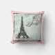 The Eiffel Tower, pink roses and French script writing are so pretty with a soft background of pinks and blues. You may change the outside background colors of the pillow if you wish. Contact me if you need help.