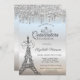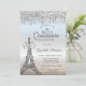 Eiffel Tower,Bow,Tiara,Drips Silver Quinceañera Invitation