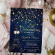 Eiffel Tower,Bow Tiara,Stars Navy Blue Quinceañera Invitation