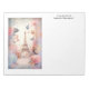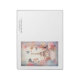 A notepad with a stylized Eiffel tower image surrounded by pretty butterflies and delicate garden flowers.