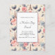 A Mother's Day Brunch invitation postcard with an elegant pattern. Pink roses, blue-gray butterflies and an Eiffel tower. A French themed pattern.