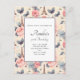 A party invitation postcard with an elegant pattern. Pink roses, blue-gray butterflies and an Eiffel tower. A French themed pattern.