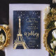 Plain white envelopes are included with paper invitations and will come to fit the invitation size you select. If you don’t need the envelopes, you may choose to not receive them by selecting the dropdown below "Envelopes" and choosing "None." If you’d like to have a design on your envelopes, you can browse all of these available envelopes to find the design that complements your Eiffel Tower Chic Gold Glitter Sparkle Wedding Invitation.