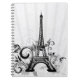 An awesome new product from Zazzle! This notebook would make a great travel journal, diary or a million other uses. Super gift for many occasions. The design is in black and white with a bit of a grunge look to it. There are floral swirls, splatters and a butterfly with the Eiffel Tower standing proudly in the foreground. Room to personalize with your name, possible travel dates or small quote. You decide.