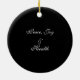 Lightweight, smooth, pure white ornament with nice sheen. Perfect size to be seen from across the room ... and to attract closer inspection! Price was great for ordering enough for the whole family! Clear, bold black design just as requested. Matches the order exactly. Just so nice!