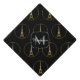Eiffel Tower gold sparkles pattern Monogram Black Graduation Cap Topper