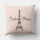 Black Eiffel tower Paris on pastel pink white fine chevron design. Outdoor Pillow. Text: 'J'adore Paris'. Created with a smile by iolantesdesigns :-)!