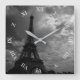 Eiffel Tower Night Cloudy Sky Square Wall Clock