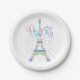 EIFFEL TOWER CONFETTI A light hearted, multi-colored Eiffel Tower with a whimsical "Paris" raining confetti.