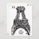 *~* Eiffel Tower Paris Black Outline White Postcard