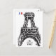 *~* Eiffel Tower Paris Black Outline White Postcard