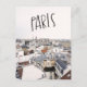 Beautifully hand lettered Paris postcard featuring a skyline view of Paris, France.