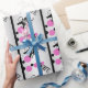 You're engaged and he got down on his knee to do it in front of the Eiffel tower. Celebrate your betrothal and wrap your gift in this silvery gray paper that has vector flourish swirls, pink and black polka dots and a romantic couple celebrating their special union.