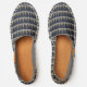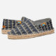 The original pattern by ZoeSPEAK on these Espadrilles was made from an original photograph of the Eiffel Tower. The iconic structure was built by Gustave Eiffel in 1889, as the entrance arch to the 1889 World's Fair in Paris, France. The pattern is dark blue, with cream colored towers repeated in rows.
