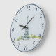 Eiffel Tower Pen and Ink Sketch on Gray/Blue Large Clock