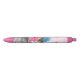 Very nice blue, or black ink pen. I will be buying more. The print was fine. I can easily see the print. The flowers look great.