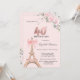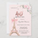 Eiffel Tower Pink Bow Flowers 40th Birthday Invitation
