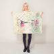 A blanket with a lovely vintage pattern background with faint roses and fleur-de-lis. Layered over top is an illustration of the eiffel tower. A hot pink lipstick impression beside the famous landmark which say xoxo! and fancy typography which says "love love love" Paris Bonjour! Text can be changed/customized to suit your needs.