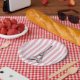Enjoy our Eiffel Tower illustration pink stripe paper plates for your child’s party.