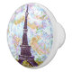 This ceramic drawer knob is called, "Eiffel Tower Pointillism", by me, Kristie Hubler, extracted from my painting, "Paris Eiffel Tower inspired pointillism landscape". Each dot when clustered makes up an overall color using "color reflection"from the colors of objects, buildings, people, and the landscape around them. The technique was popularized by Georges Seurat, who also has a painting by the same name, only my inspiration comes from photos of Paris, France, the Eiffel Tower, and my visit inside the Paris Las Vegas casino and resort, seeing the interior shop facades. Its the Eiffel Tower, the sky, clouds, and grass. Love is in the air! The sky is pastel colors of pinks, sky blue, lilac,gold and mint green, with yellow greens for grass, and various shades of gray and black mixed with blue violet iris and brown for the Eiffel Tower.