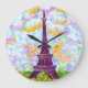 Eiffel Tower Pointillism Spring Landscape Large Clock