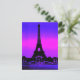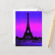 The Eiffel Tower, a French landmark, with a pink and purple backround