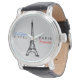 It's always time to visit the Eiffel tower. Black stylized illustration. The gray background color is customizable