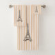 Enjoy our pink and white stripe eiffel tower bath towels.