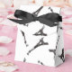 Tent style with black ribbon favor box with an image of black Eiffel Towers on white. See the entire Cancan Favor Box collection in the PARTY FAVORS section.